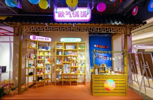 在「开运招福」区域,展示了2021年instax一次成像开发的量产型礼盒及季节性配件盒。购买任意款相机,可随意搭配自己喜爱的主题礼盒;季节性配件盒内含丰富的相机周边物料,例如相纸贴纸、相册和肩带等。每款都结合了当季特点,为消费者提供不同的相纸玩法体验。新颖巧思的设计,为消费者打造充满创意的DIY体验。