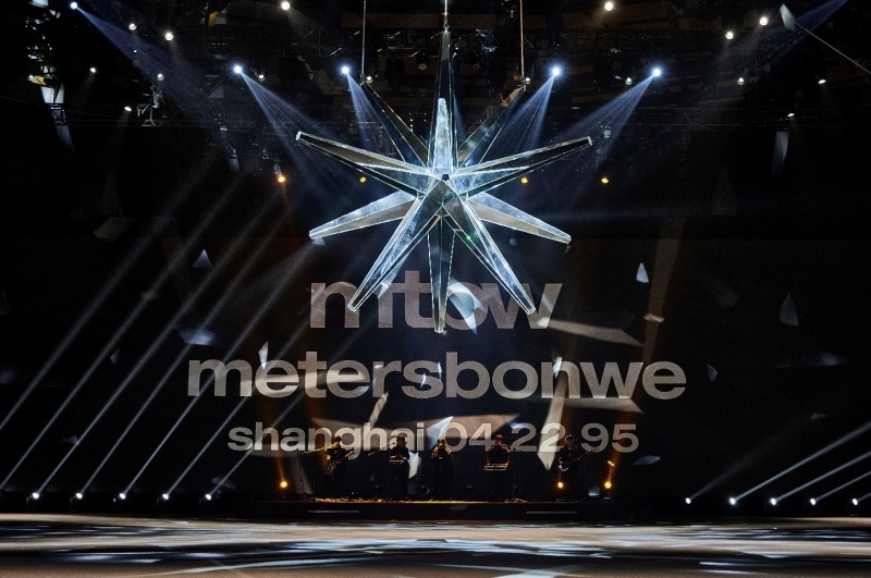 metersbonwe “锋芒新生”2022春夏系列发布大秀在上海西岸穹顶艺术中心耀目开启。metersbonwe以此建筑语言为切入点,使古典主义与先锋美学在这一时空交汇重合。对称、有序、极致冷峻的几何线条向上汇聚成一个巨大的穹顶,让其外观宛如古罗马著名的建筑万神殿(Pantheon)。由当代知名艺术家张鼎受metersbonwe委托设计制作的《橙色巨星》艺术装置高悬空中,十二个外延、多维度扩张的楞角锋芒毕现,仿佛在和丰富多元的意识形态相互联系,在灯光的照耀下熠熠生辉,如同神光普照于苍穹之中,试图突破文化桎梏,获得大胆的崭新灵感。