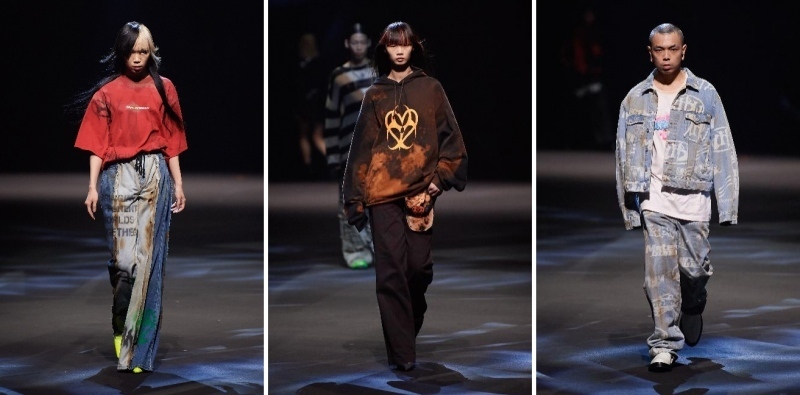 而在千禧年到来时,大量的科技、未来、后机械、仿生人的视觉元素造就了特有的新世纪狂欢。在metersbonwe 2022春夏系列中,一个全新的风格出现了,这就是新金属浪潮下的休闲服饰反叛主义。以“暴力反抗机器”为代表的新金属乐队,在全球范围内曾经掀起过摇滚乐最辉煌的运动,在思想表达和音乐表现上,他们给其他审美领域带来了强烈的刺激,这种跨文化背景的组合形式构成了新一代青年的穿着选择。