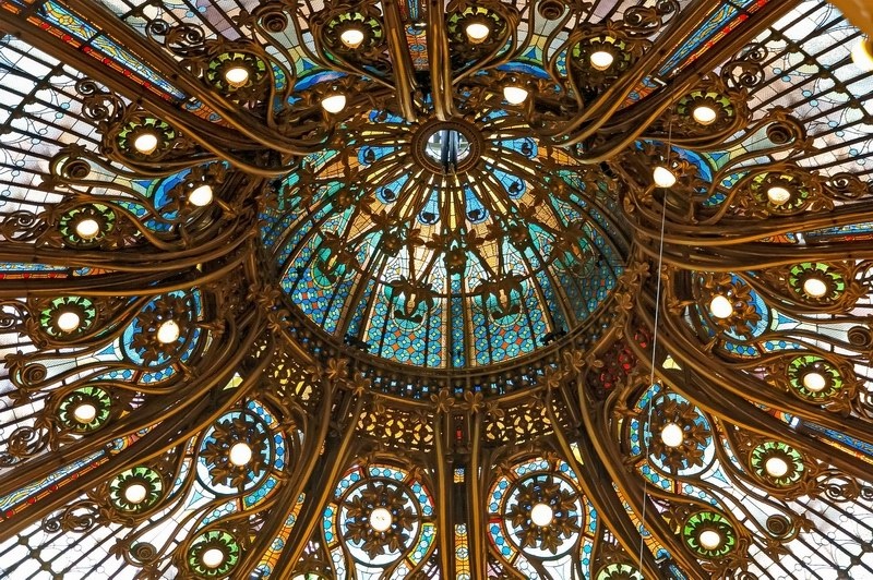 巴黎老佛爷百货商店拜占庭式的巨型镂金雕花圆顶