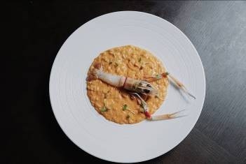 柠檬和马斯卡波尼芝士焗饭配新西兰鳌虾和气泡酒泡沫
