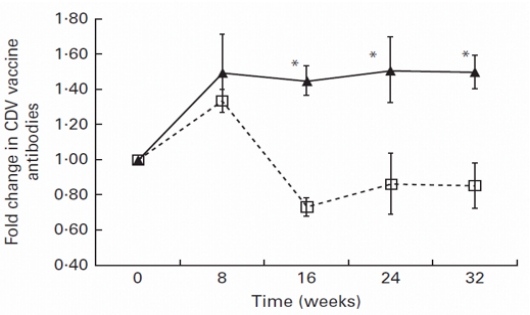 幼犬对CDV疫苗的免疫反应-IgG水平