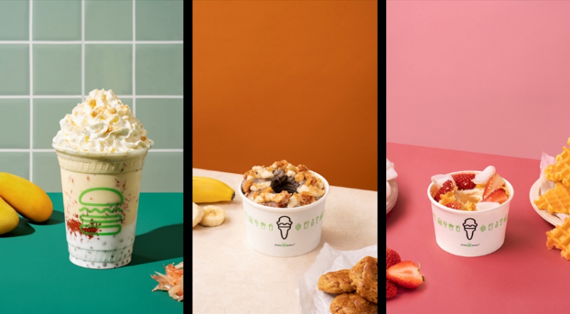 “叹世界”离不开“叹美食”,广州的美食素来闻名全国。粤菜作为广州的本地菜系,风味独特、食材新鲜健康,这恰好与Shake Shack “Stand For Something GoodTM”的品牌理念相契合。Shake Shack 广州天环将广州传统美食与城市符号相结合,为广州人量身打造城市限定美食:羊之甘露(Guangzhou Elixir)命名的灵感源自广州的别称“羊城”,选用广式经典甜品杨枝甘露搭配椰汁西米露,与Shake Shack经典奶昔手工打制而成,配以奶油,并洒落黄油饼干曲奇碎和芒果粉,口感丰富且有层次;天之骄仔(Parc-fect Partner)与广州天环年轻时尚的社区氛围相呼应,由广州著名小吃“鸡仔饼”所制成。鸡仔饼甜中带咸,和香草、巧克力冰激凌与黑芝麻酱,香蕉创造性地结合一起,为这份冰激凌赋予突破;西关小姐东山少爷(Canton Love Story)以广式肠粉为灵感来源,结合西式特色甜点华夫饼与草莓酱,再用草莓和白芝麻加以点缀,创造出东西口味融合的独特味觉体验。这份冰激凌盛放着草莓酱浪漫的粉红色,宛若一幅罗曼蒂克爱情的插图,唤起对广州传统文化符号的记忆。