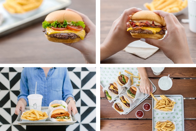 Shake Shack经典美食:招牌牛肉堡、香辣烟熏培根牛肉堡、招牌鸡肉堡、波浪纹薯条