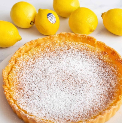 配料:1个馅饼面团、1个新奇士柠檬、1根盐渍黄油,切成 1/2 英寸的块、砂糖、4个鸡蛋、1茶匙香草、糖粉