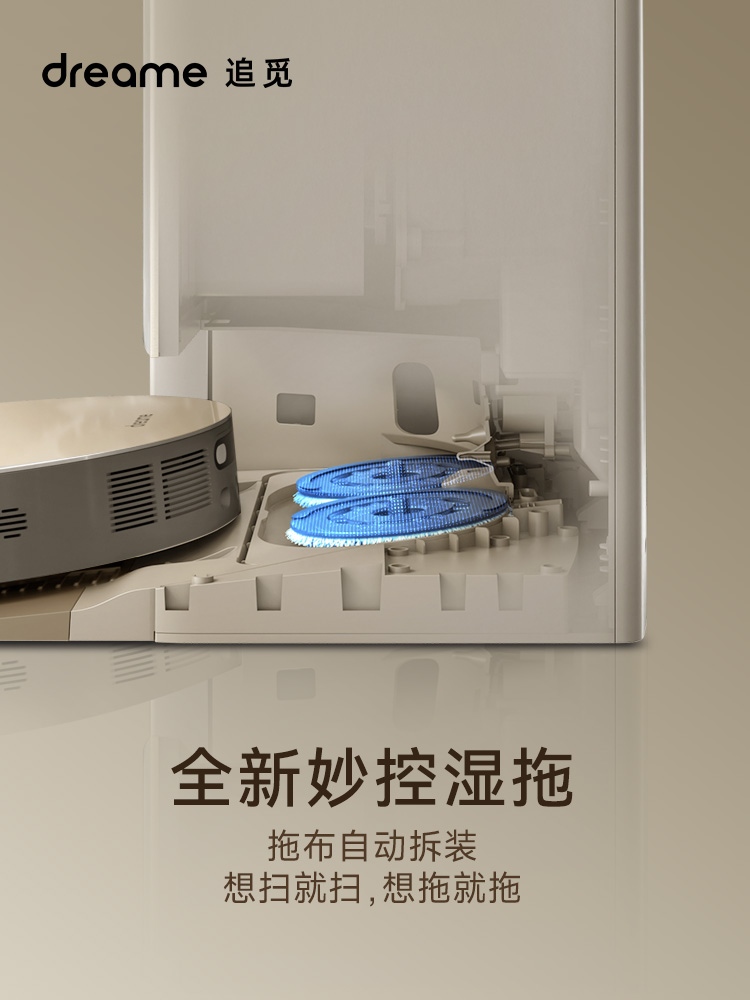 具体来看,追觅豪华清洁旗舰X10系列采用行业主流拖地方案:按压式双圆盘拖地,抹布转速可达180转/分钟,自带80mL内置水箱可以实现均匀放水补水,持续恒湿拖地。同时,X10系列还支持扫地+拖地双模式,扫地模式下抹布可自动拆卸,避免湿抹布打湿地面从而影响吸尘效果;拖地模式中滚刷可自动抬升,防止污水吸入尘盒难以清理、发霉,实现了真正意义上的全自动扫/拖互换,拒绝手动!