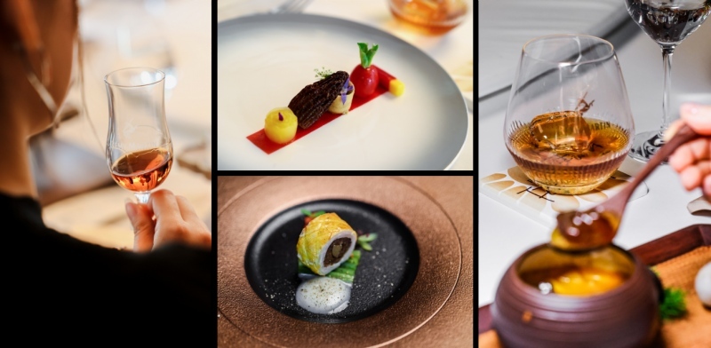 盛宴之中每道菜品均佐以优质香槟区干邑人头马X.O,碰撞出层次丰富的感官享受。如此卓越的风味体验缘于人头马X.O只甄选来自干邑中心地带大小香槟区的珍贵葡萄,并经历漫长的陈酿岁月,不仅呈现出琥珀般艳丽饱满的色泽,更带来极为丰富馥郁的风味,让人一见倾心。当天鹅绒般顺滑、圆浑的口感,邂逅鲜美绝伦的食物滋味,更加令人意犹未尽,每一口都是奢适愉悦体验,中国千年美食智慧真味秘境就此展开。