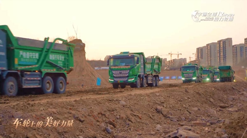 500辆宇通新能源重卡上演现实版“愚公移山”,百卡峥嵘澎湃绿色动能,成为城市重点项目建设的排头兵。