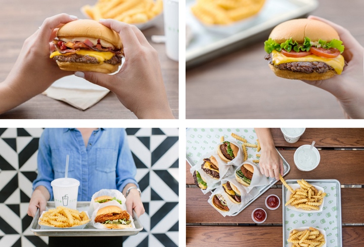 Shake Shack 经典美食:招牌牛肉堡、芝士蘑菇堡、招牌鸡肉堡、波浪纹薯条