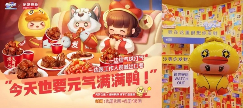 春节期间,游戏内正式推出“绝对爆发财”联名限定时装免费领取活动、《元梦之星》新春集市活动绝味鸭脖的发财桶造型限定摊位也在星梦广场开张、星世界地图【绝对爆燃辣不得了】、《元梦之星》史上第一款单字称号“绝”等,超好玩的互动,也让绝味×元梦之星活动上线当天,直接带动#我在元梦当财神#话题冲上微博热搜。