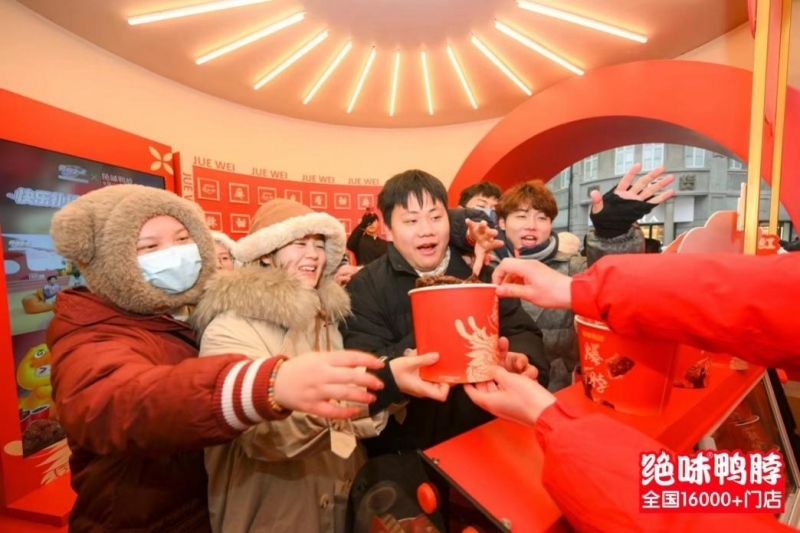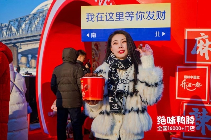 2月2日-2月5日,“爆一脖.火爆城市”在全国七城接力开启,巨型发财桶占领哈尔滨、沈阳、杭州、武汉、成都、广州、三亚七城的城市地标,深度结合当地文化,开展既具品牌共性、又各具地方特色的线下活动,吸引数万名游客观众到场。现场试吃体验排起长队,获得了现场试吃者的一致好评——“香甜麻辣爽”、“口感独特”、“一定会回购”是被提及最多的关键词。绝味鸭脖在这个春节,为消费者送上“恭喜发财”的新年祝福,传递绝味对人民生活富足、祖国繁荣昌盛的美好祝愿。