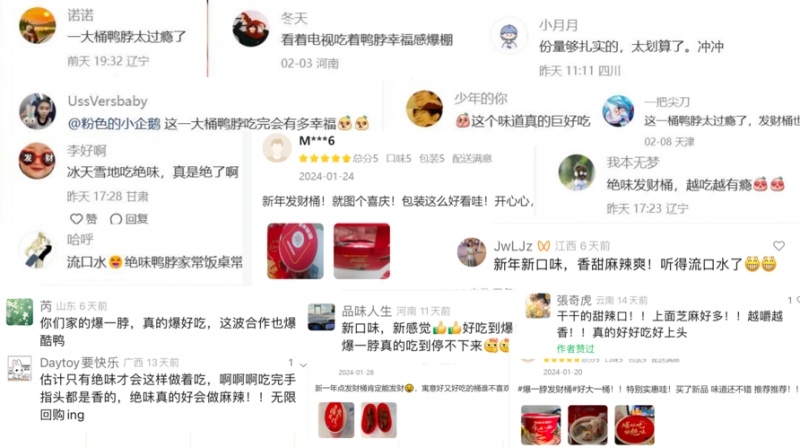 什么是嘶哈一下?吃辣的快乐,根本停不下来!从白天到晚上,每一次味蕾相遇点燃了人间烟火的多巴胺狂欢。香甜麻辣爽,五感层次,爆爽体验,新年就要爆一脖 发财桶。绝味鸭脖首次推出发财桶,大大提升卤味赛道包装颜值。引领“食尚”新潮流,爆好吃够绝味。对于年轻群体,复购率极高。他们对于新鲜、独特的口味有着较高的追求,而爆一脖正好满足了他们的味蕾需求。