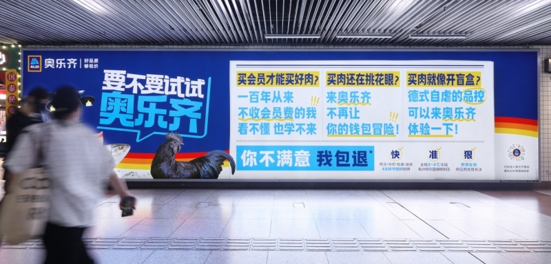 今年5月,奥乐齐在上海地铁继续投放广告,不过本次内容从蔬果的推广,变成了“不满意包退”的承诺。广告上奥乐齐频频表示自己拥有非常强大的品控能力,突出了自己的供应链“快准狠”。
