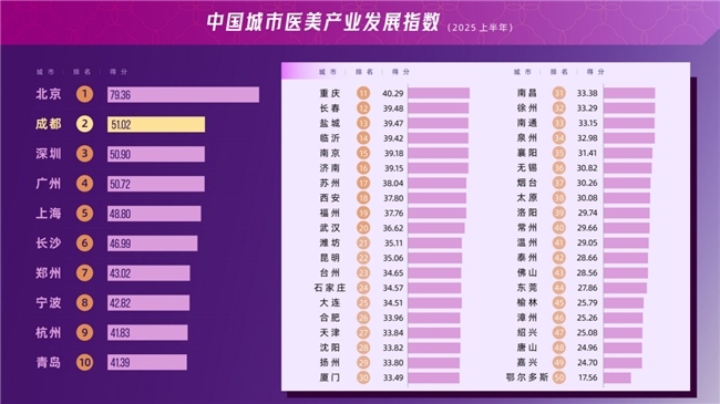 (2025上半年度“大学路11号”中国城市医美产业发展指数)