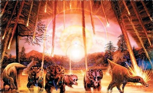 恐龙的灭绝原因,大部分科学家认同是天体磕碰地球,给地球带来灾难性的环境及气候引致。而为了寻觅依据,在科学家及地质学家共同努力,的确找到许多有力依据,最有力的一个依据是在墨西哥的尤卡坦接近克苏鲁伯村的邻近,找到一个超大陨石碰击坑,该坑直径176公里。