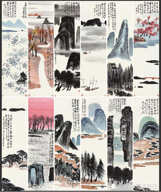 (三)乙丑中秋后作画十二幅之三,杏子坞老民。 印文:白石山翁(四)风景何处异人世,柏树森森生夏寒。我欲结街坊岭上,喜看山色少遮拦。乙丑中秋后作画十二幅之四并题,白石。 印文:借山白叟